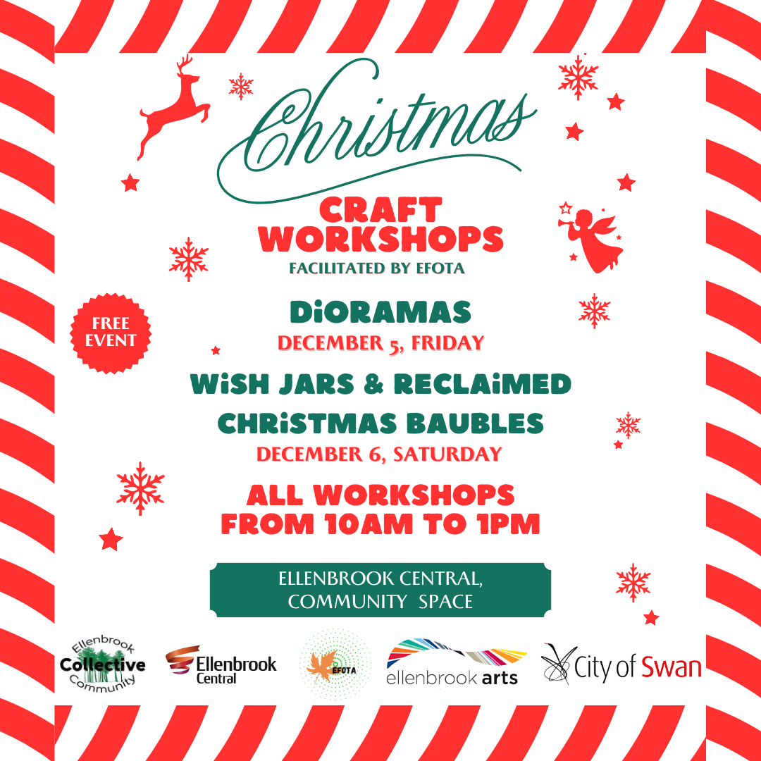 Come along for free Christmas craft activities with the Ellenbrook Friends of the Arts.